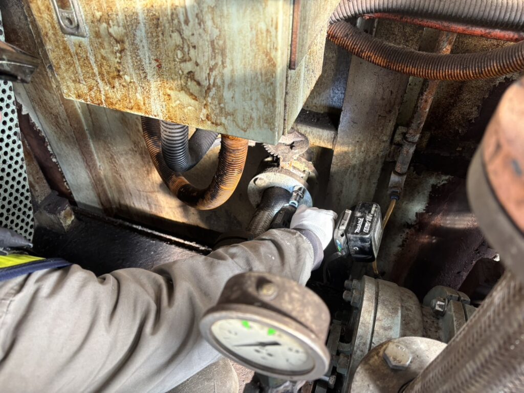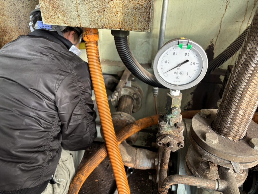 最後は、細部にわたる締め付けの確認と、水漏れの確認、圧力計を用いた正常動作のチェックです。