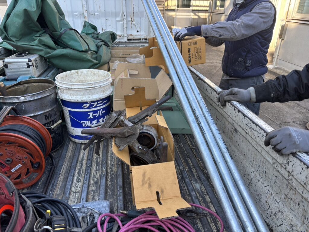 私たちは役目を終えた部品たちも最後はちゃんと持ち帰るのはもちろんのこと、トラックへ乗せる工具、資材、部品などもていねいに綺麗に配置してから貴社します。このような細かいところ一つ一つが数ある作業の高品質を担保できているのかもしれませんね